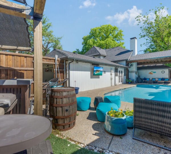 This charming home offers comfort, space, and a touch of Texas charm, making it perfect for families or groups seeking a relaxing getaway. Backyard is a dream with everything you can think of! BBQ grill, Fire Pit, Bar Area, HUGE Hot Tub and spacious pool! With an outdoor TV and plenty of lounge chairs and outdoor sofas, this is the ultimate backyard for all your family and friends to enjoy! Home has 5 bedrooms and 3 full baths with game room for everyone to have plenty of space!