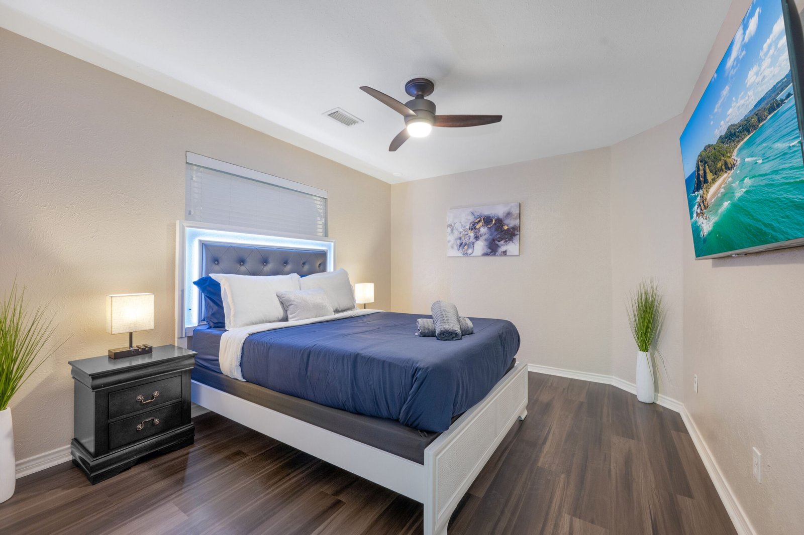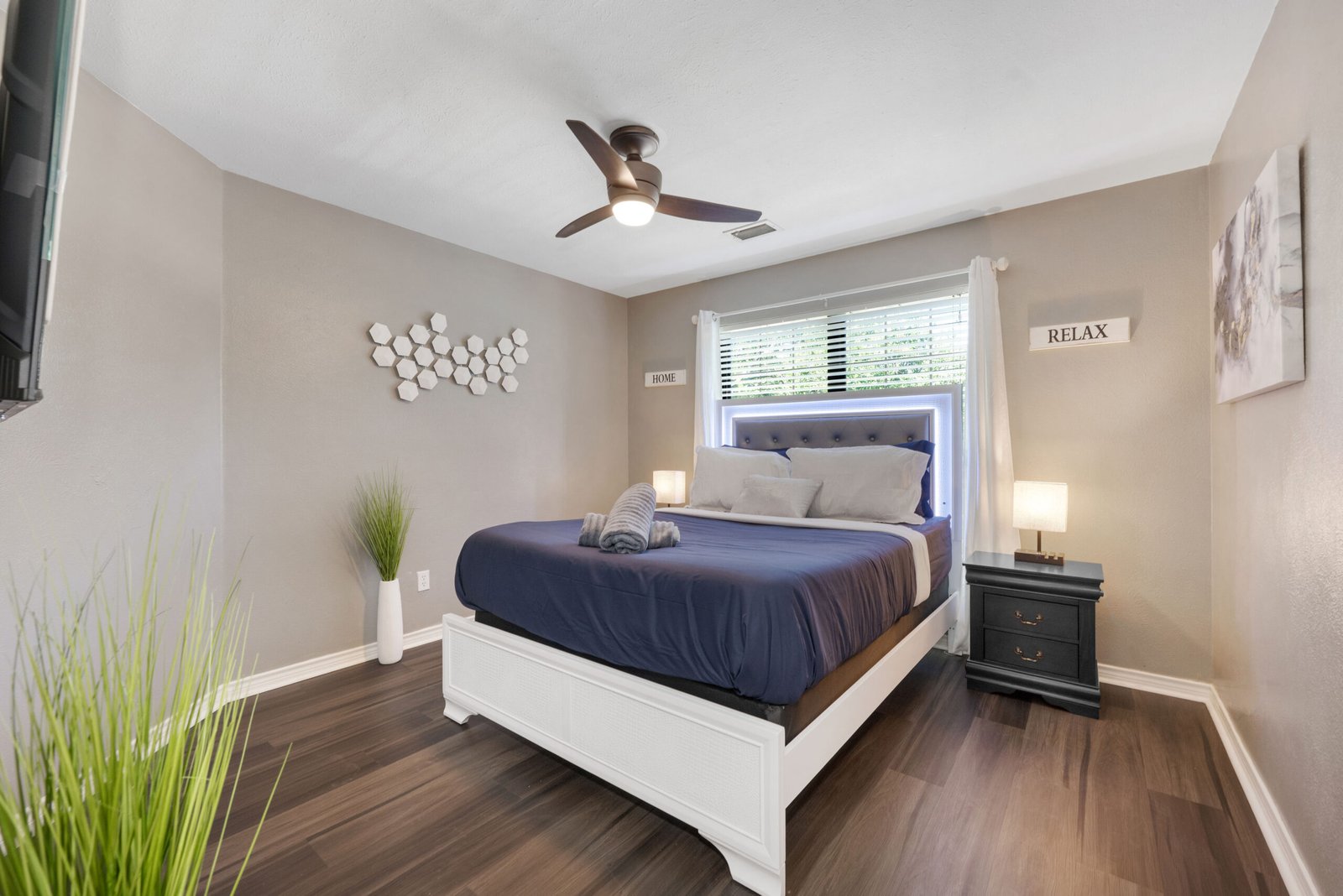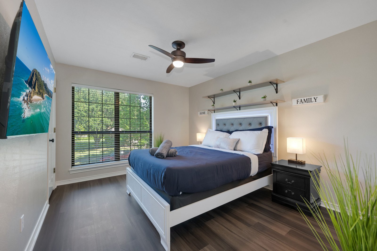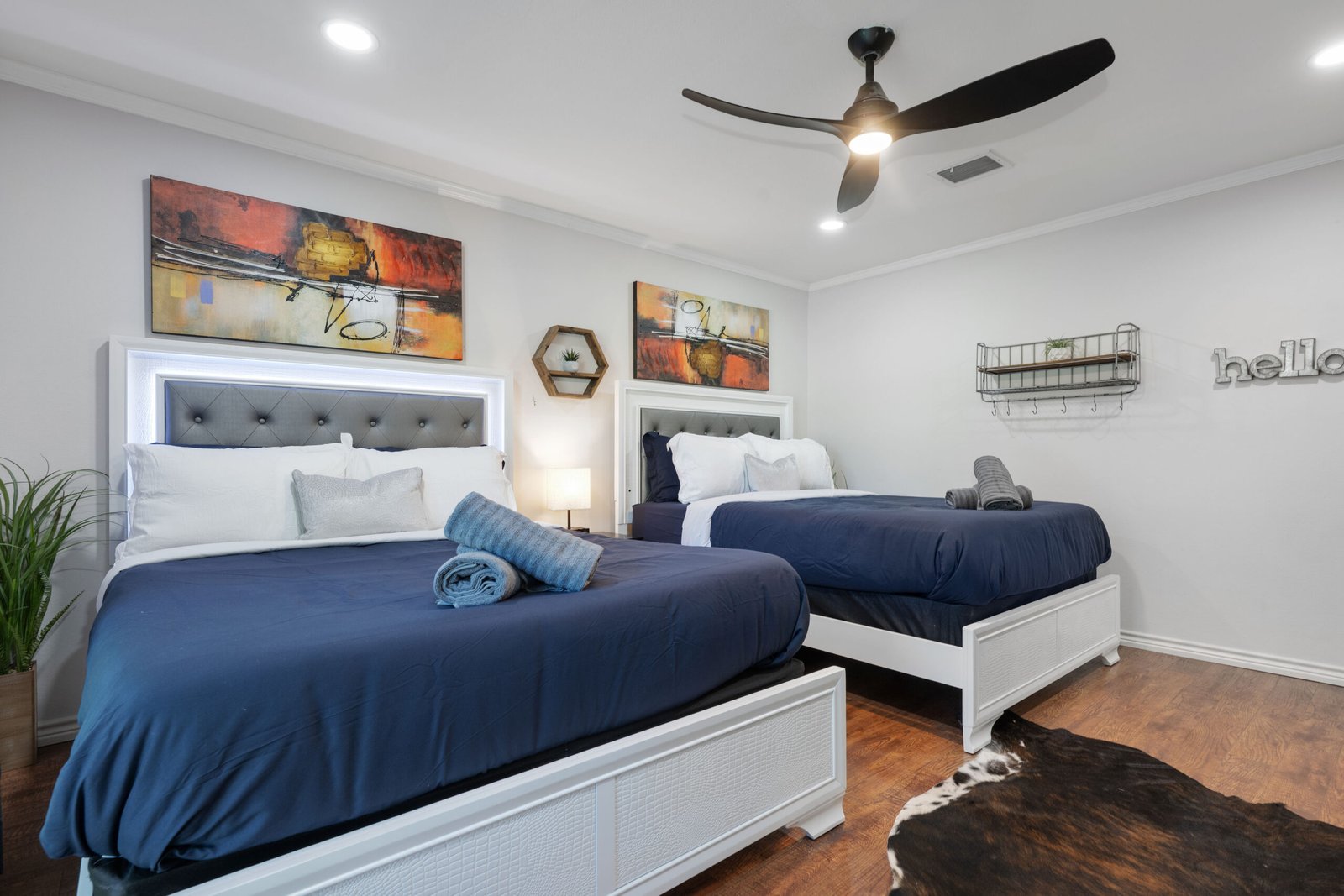 Welcome to Your Luxury Escape – The Ultimate airbnb with all amenities! Step into this beautifully appointed 5-bedroom estate, designed for both relaxation and recreation. Nestled in a peaceful neighborhood, this spacious retreat features an expansive backyard perfect for outdoor lounging, gatherings, or simply soaking in the serene surroundings. Huge swimming pool with beautiful spacious hot tub! Ground floor has 2 bedrooms and 2 full baths! Upstairs has 3 bedrooms and 1 full bath with double sinks. Gameroom includes, ping pong, smart tv, lounge area. EV Level 2 charger. You would park on back driveway and have it plugged in with garage door closed. Inside, the home boasts a refined blend of modern design and cozy Texan charm. The open-concept living space flows effortlessly into a fully stocked kitchen, perfect for entertaining or family meals. Each bedroom is thoughtfully designed with plush bedding and high-end touches to ensure restful nights for all guests. Gourmet kitchen includes fully stocked amenities along with a Keurig Duo and all coffee essentials included! Downstairs, a dedicated game lounge invites friendly competition with a ping-pong table, creating the perfect space for unwinding after a day of adventure. The backyard long driveway offers plenty of parking as well all along the wide lot of the home. Whether you’re seeking a family getaway, a friends’ retreat, or a peaceful escape, this luxurious and fully loaded home offers the perfect blend of comfort, style, and outdoor charm.