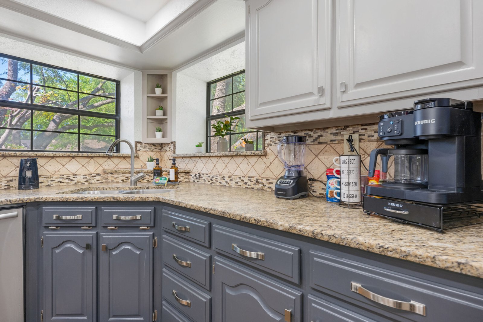 🔹Full gourmet kitchen with full amenities with all stainless steel appliances. Keurig Duo Coffee station with K pods, ground coffee, sugar, and creamer all included. Fully stocked kitchen with all dishware, crockpot, rice cooker, blender, premium cookware, utensils, BBQ Utensils etc.