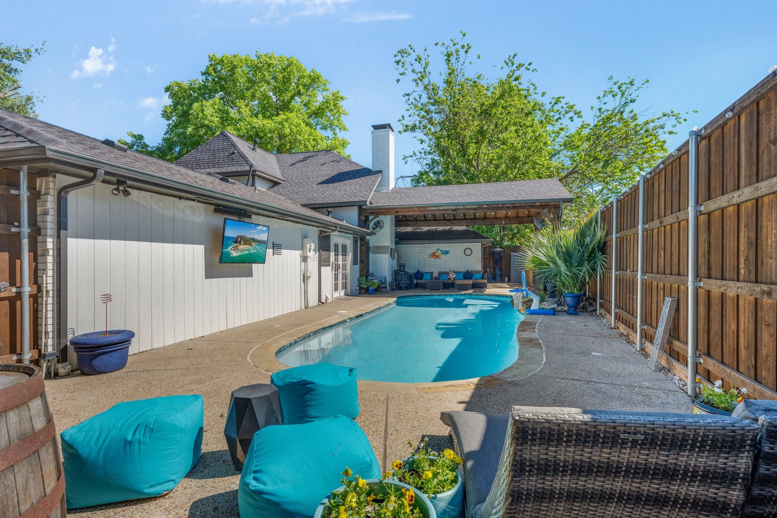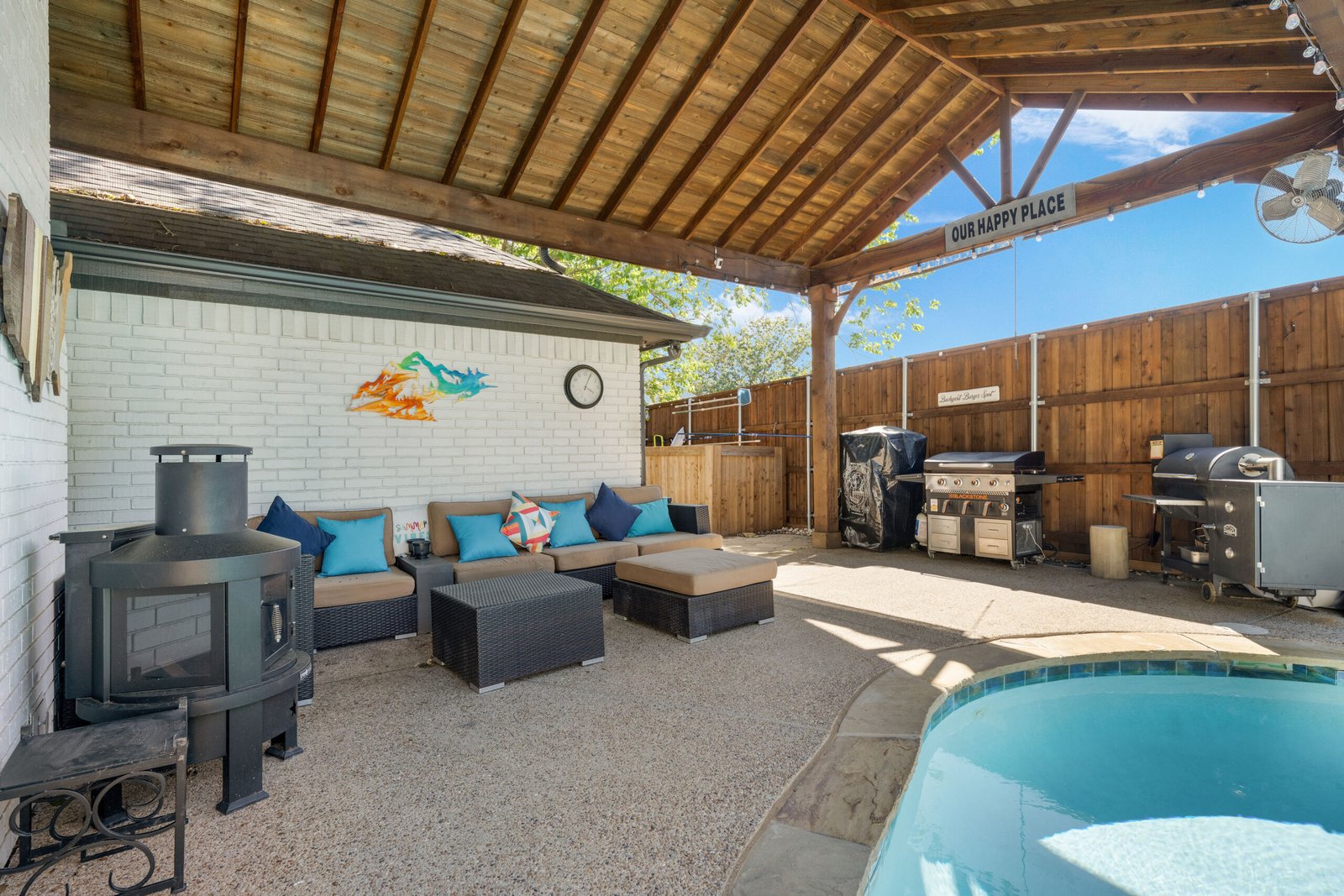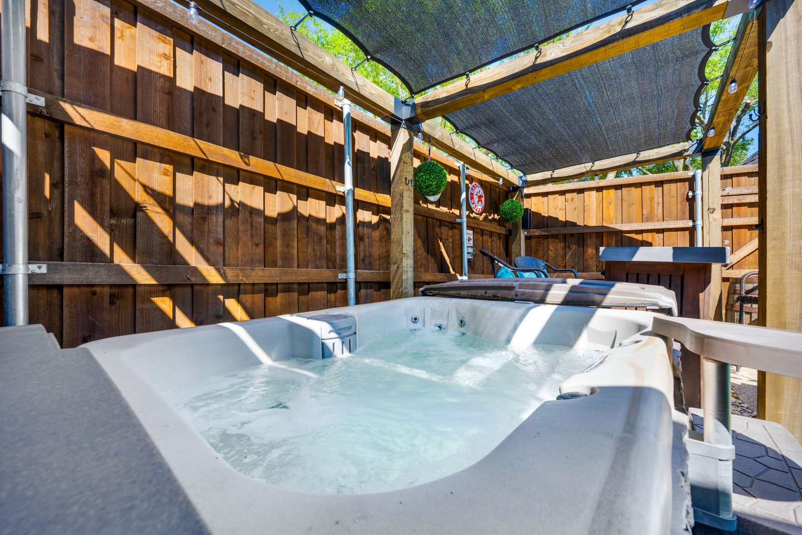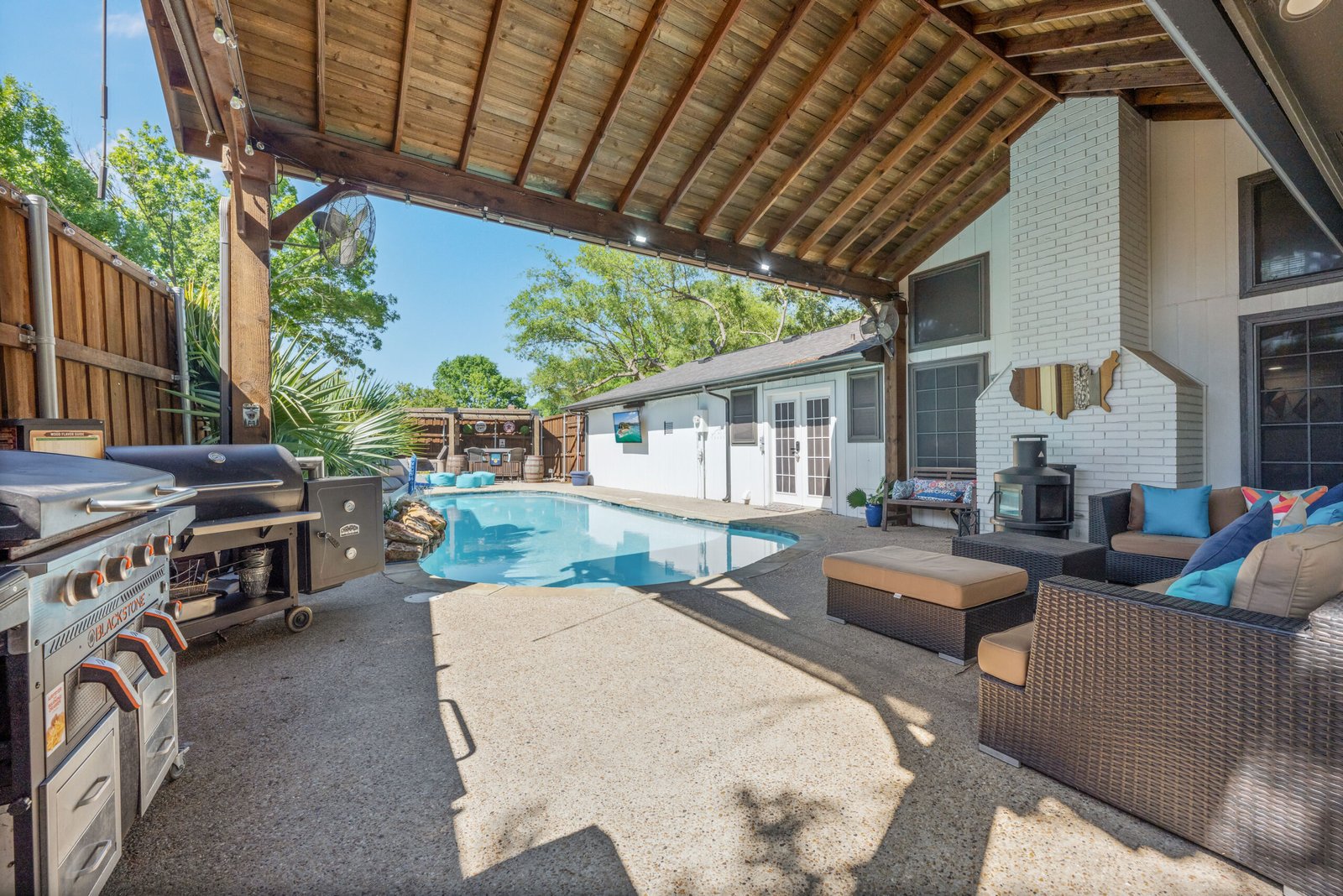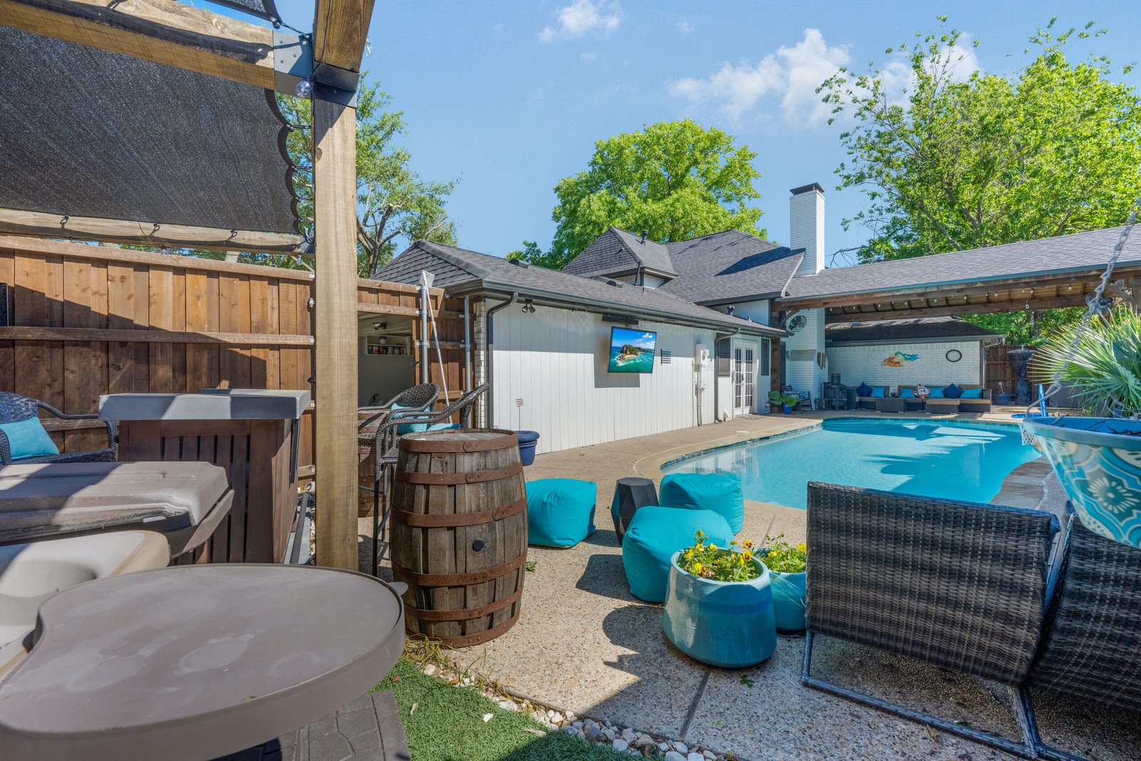 This charming home offers comfort, space, and a touch of Texas charm, making it perfect for families or groups seeking a relaxing getaway. Backyard is a dream with everything you can think of! BBQ grill, Fire Pit, Bar Area, HUGE Hot Tub and spacious pool! With an outdoor TV and plenty of lounge chairs and outdoor sofas, this is the ultimate backyard for all your family and friends to enjoy! Home has 5 bedrooms and 3 full baths with game room for everyone to have plenty of space!