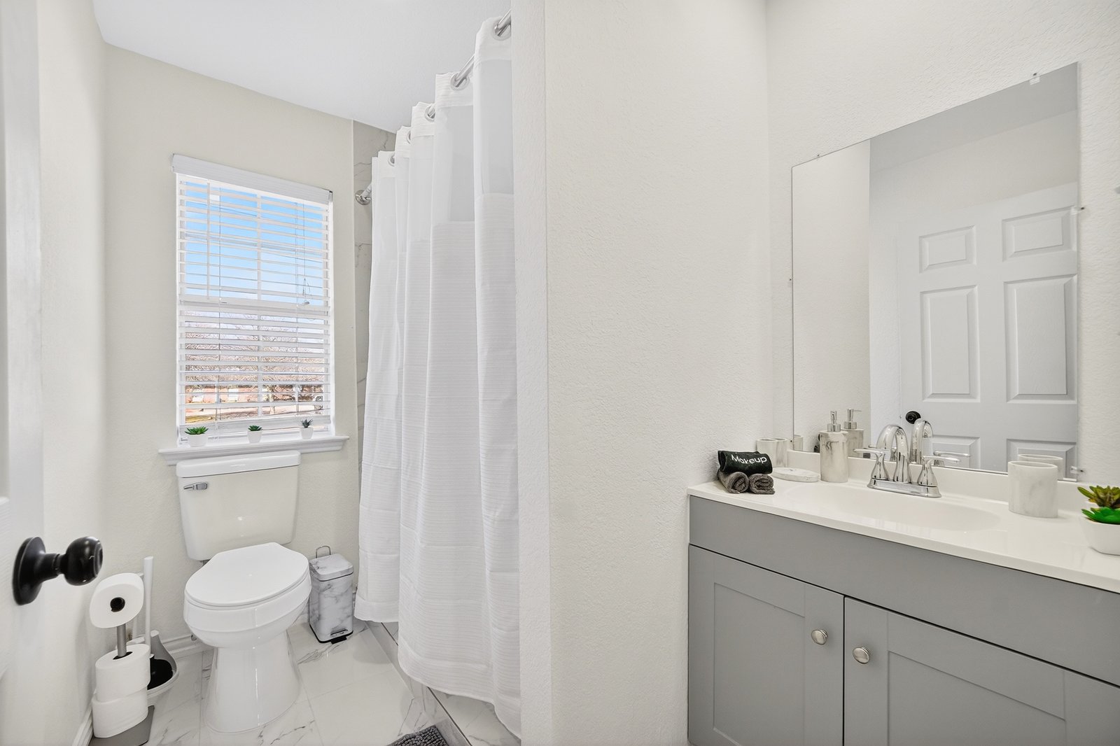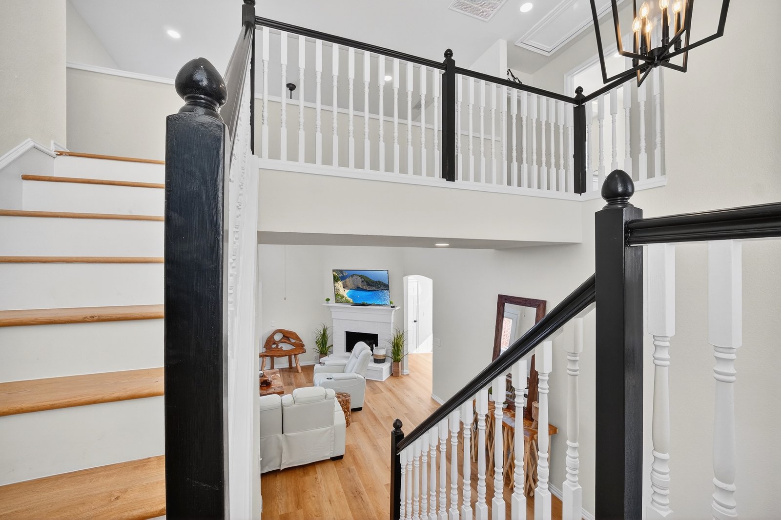 This 6 bedroom spacious home has 2 bedrooms and one full bathroom downstairs! The other 4 bedrooms and 2 full bathrooms are upstairs.