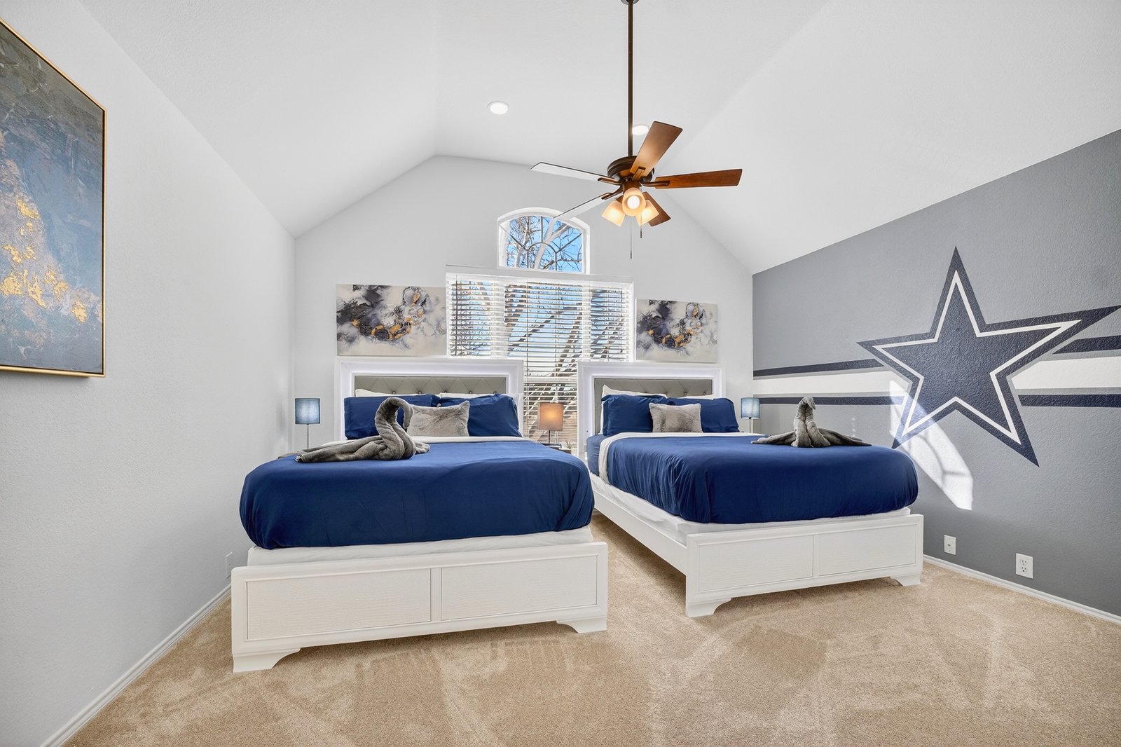 Welcome to this grand and luxurious home. Spacious backyard with turf and string lights all around the high fence. Covered pergola to enjoy BBQ or just hanging out at the pool! The home provides sleeping arrangements for 14 guests. Please contact host regarding large groups. Front yard is also turf and has 2 golf areas. Perfect for your reunions, family get together, sports teams, or corporate events!