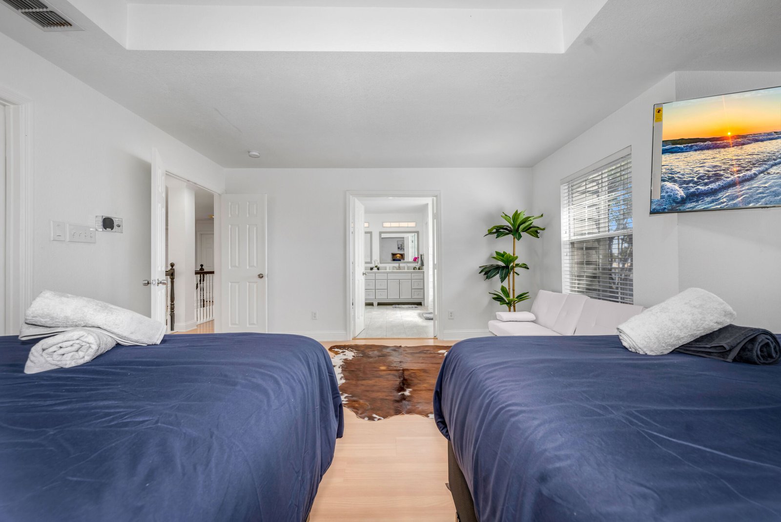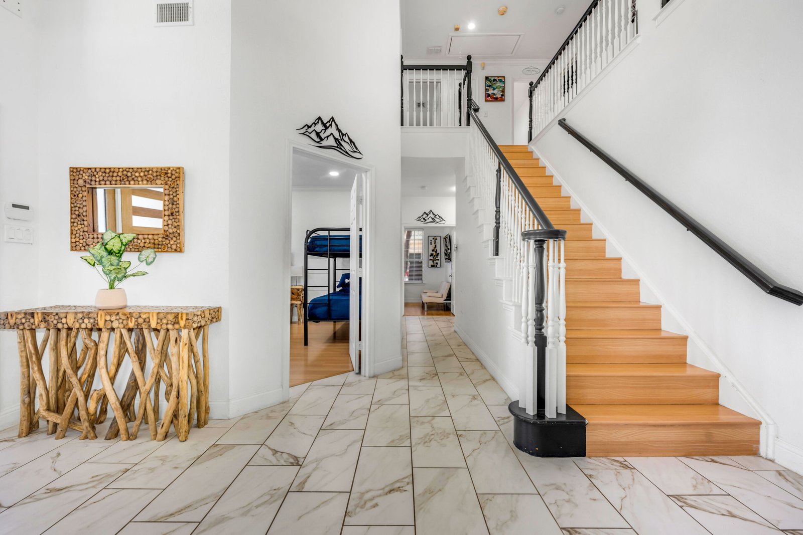 This 6 bedroom spacious home has 2 bedrooms and one full bathroom downstairs! The other 4 bedrooms and 2 full bathrooms are upstairs.