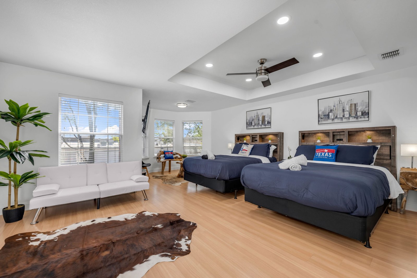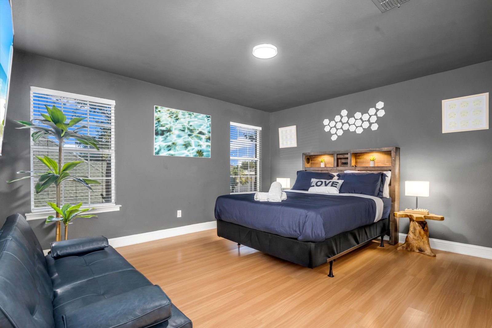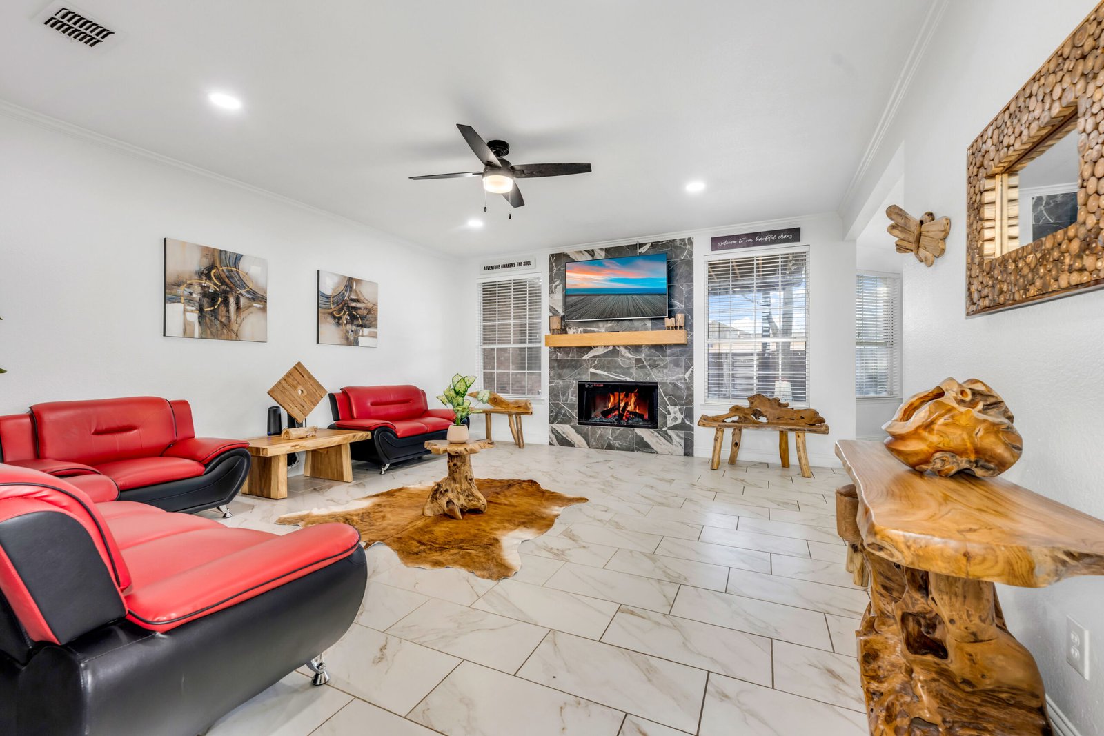 Welcome to this grand and luxurious home. Spacious backyard with turf and string lights all around the high fence. Covered pergola to enjoy BBQ or just hanging out at the pool! The home provides sleeping arrangements for 14 guests. Please contact host regarding large groups. Front yard is also turf and has 2 golf areas. Perfect for your reunions, family get together, sports teams, or corporate events!