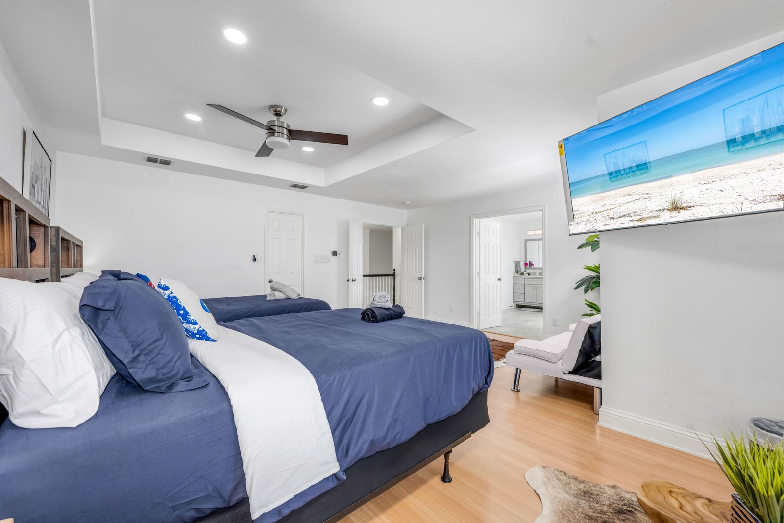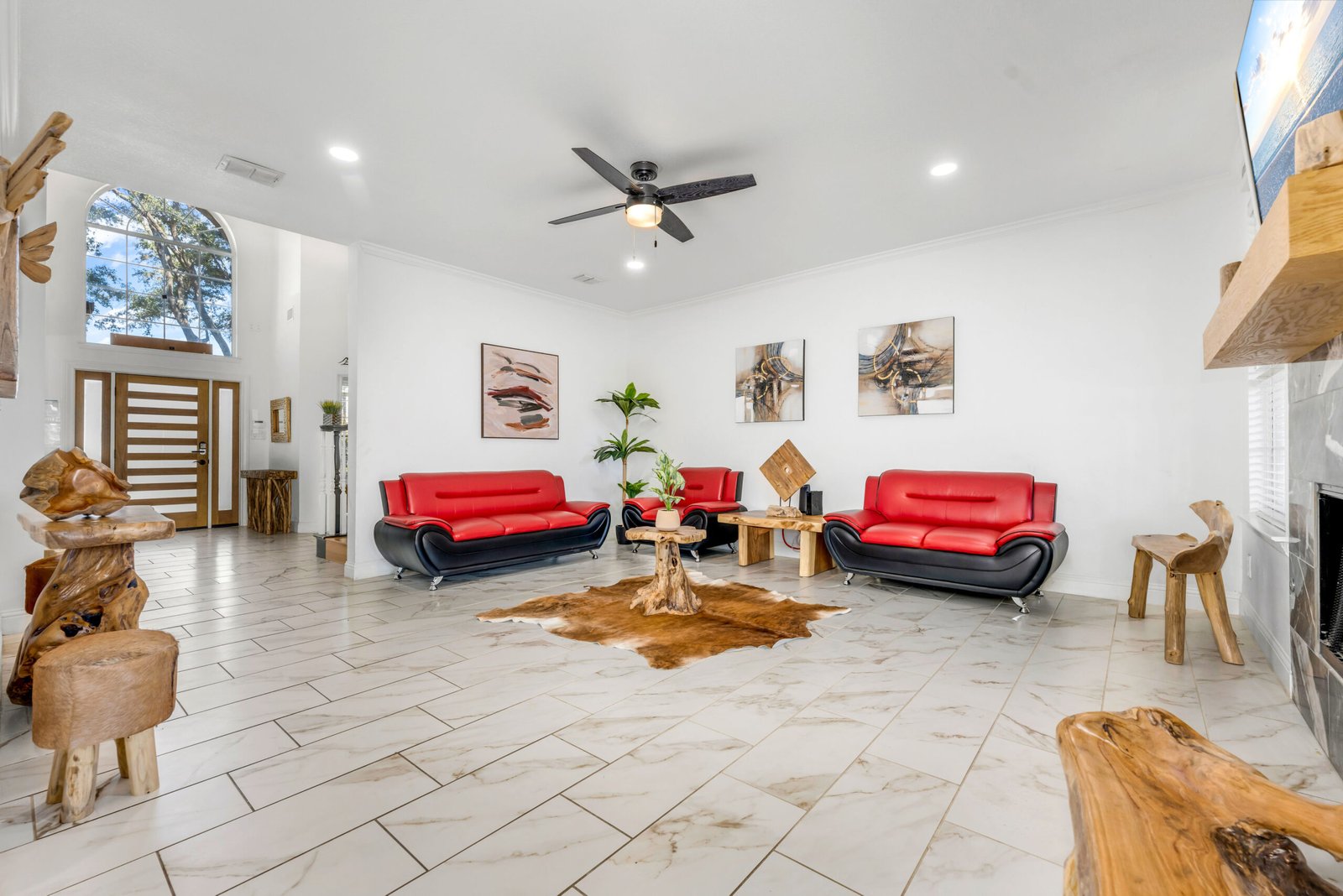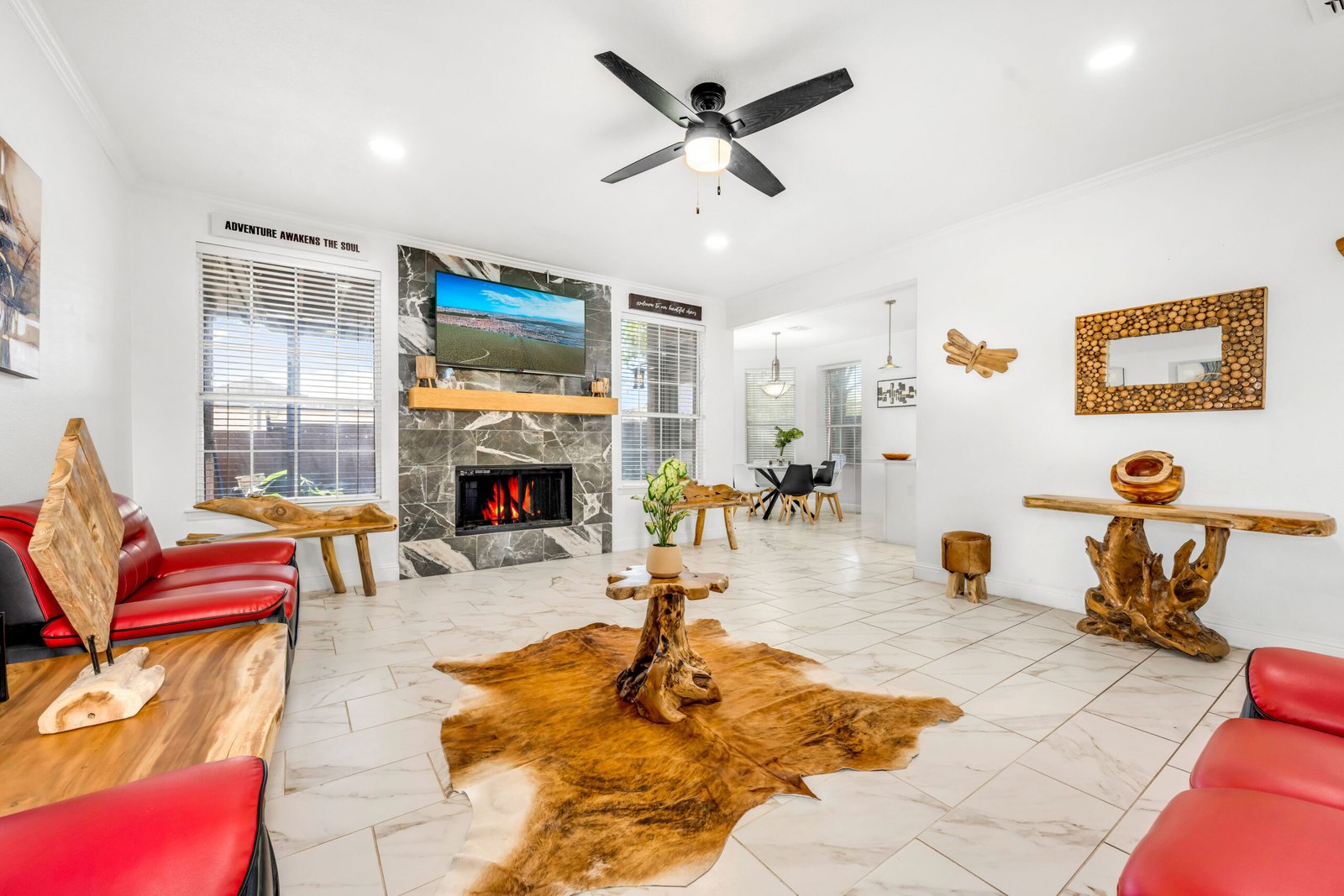 Welcome to this grand and luxurious home. Spacious backyard with turf and string lights all around the high fence. Covered pergola to enjoy BBQ or just hanging out at the pool! The home provides sleeping arrangements for 14 guests. Please contact host regarding large groups. Front yard is also turf and has 2 golf areas. Perfect for your reunions, family get together, sports teams, or corporate events!