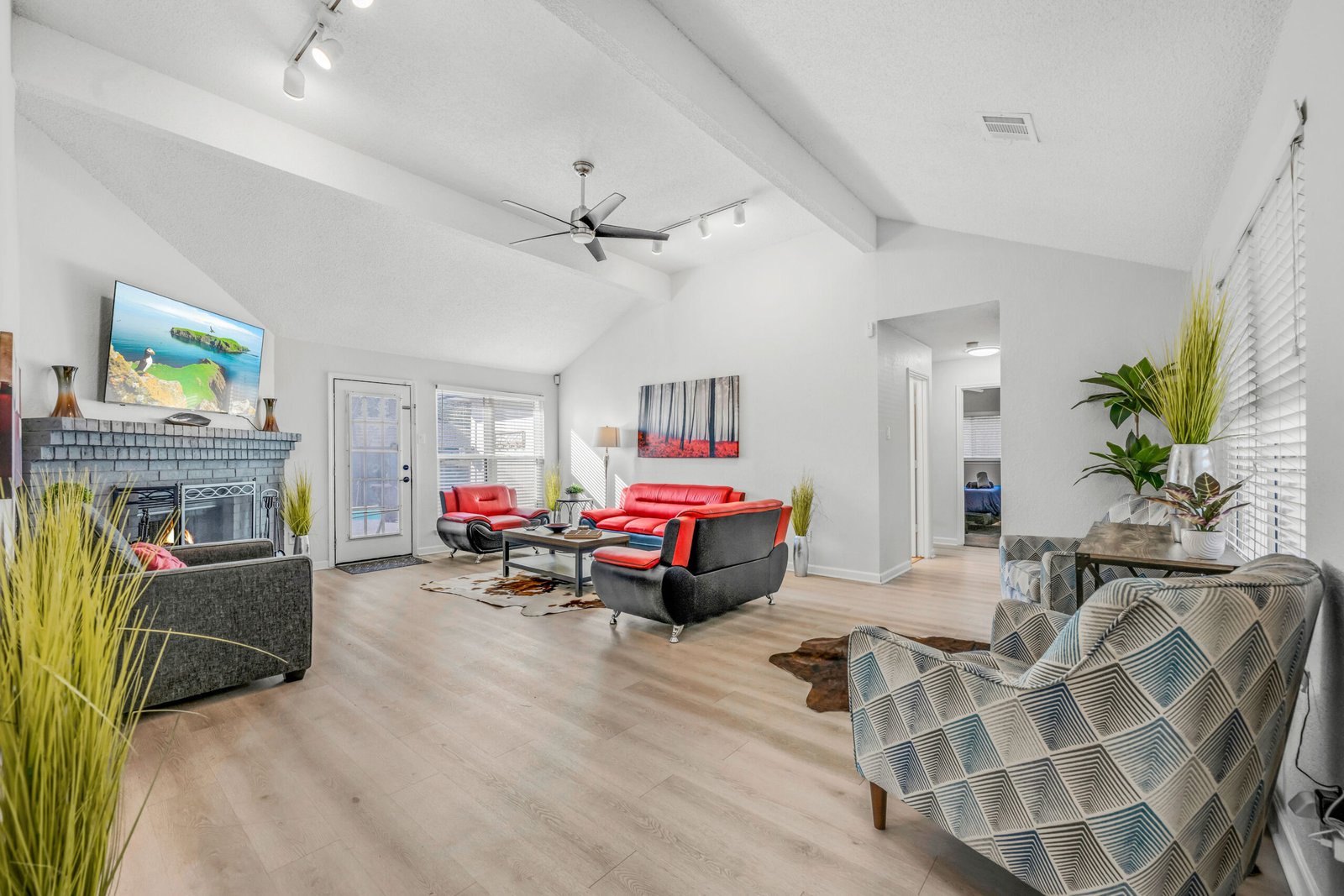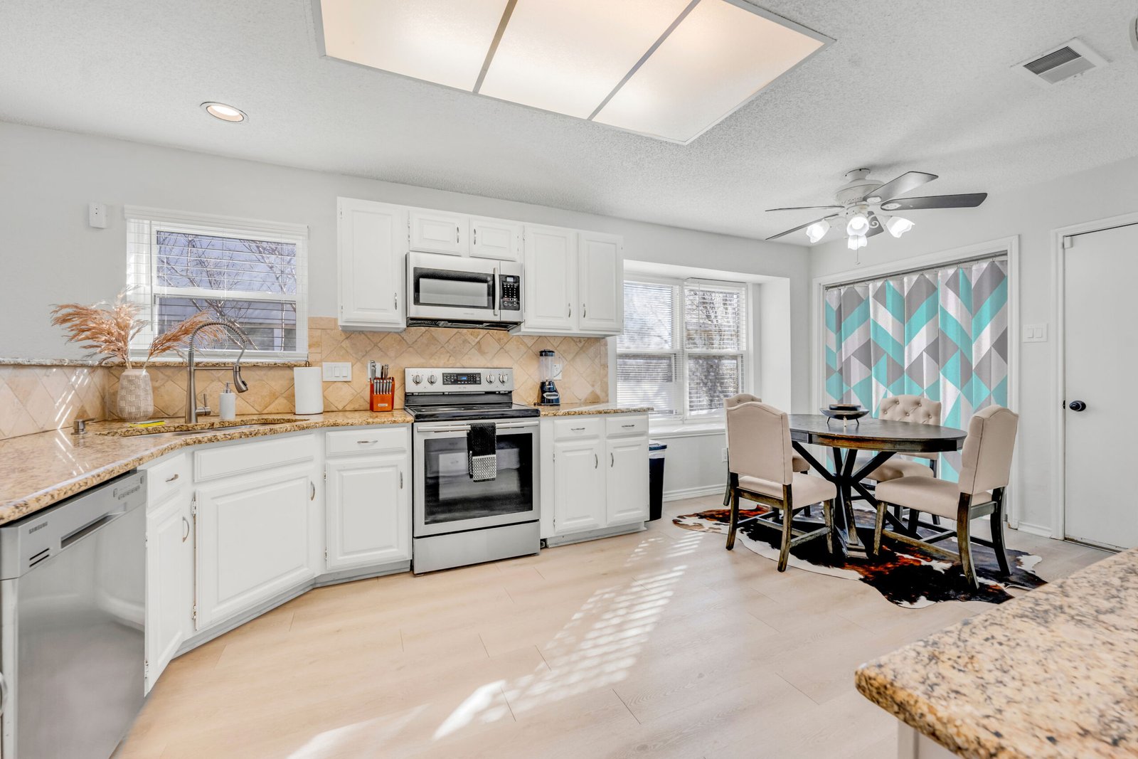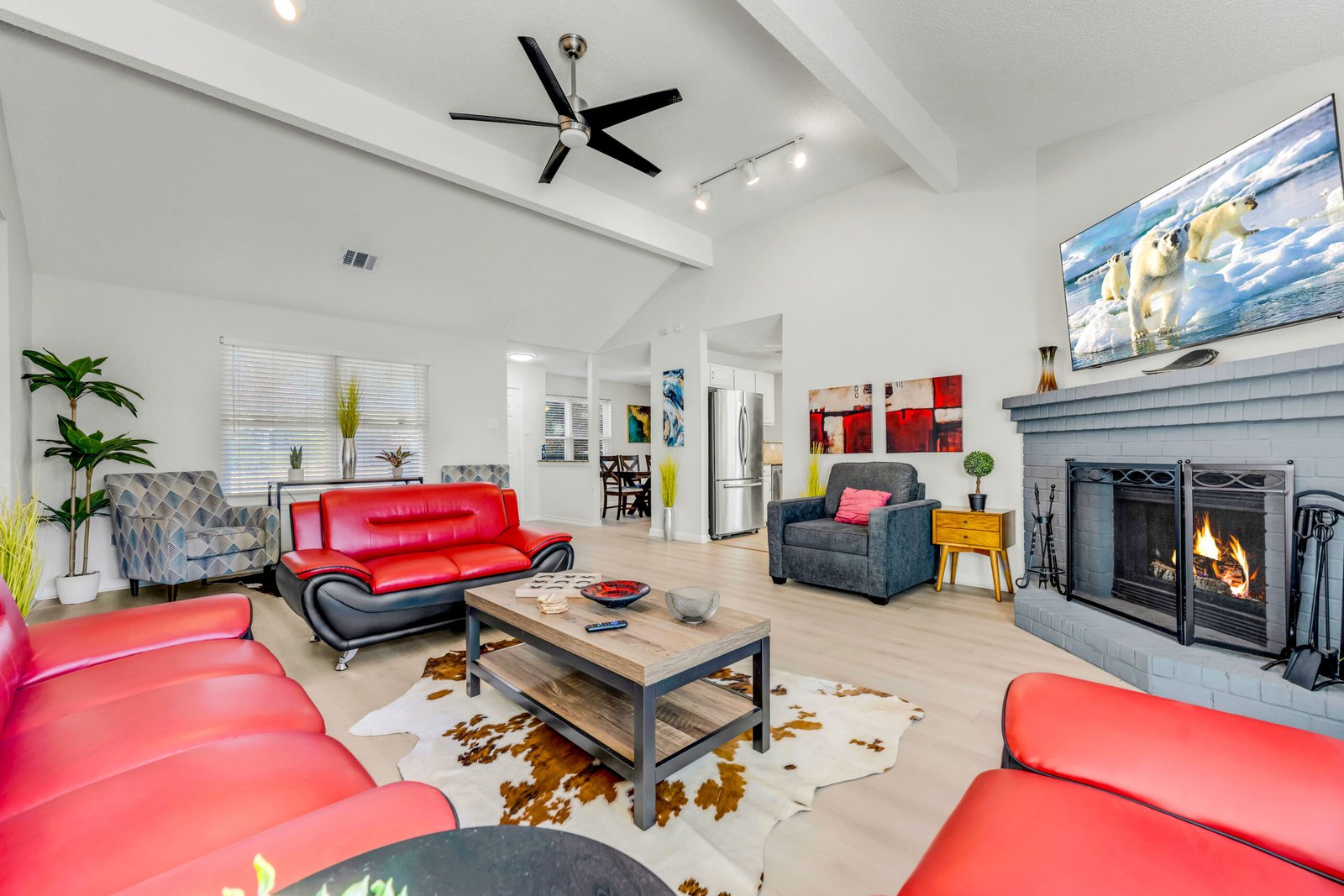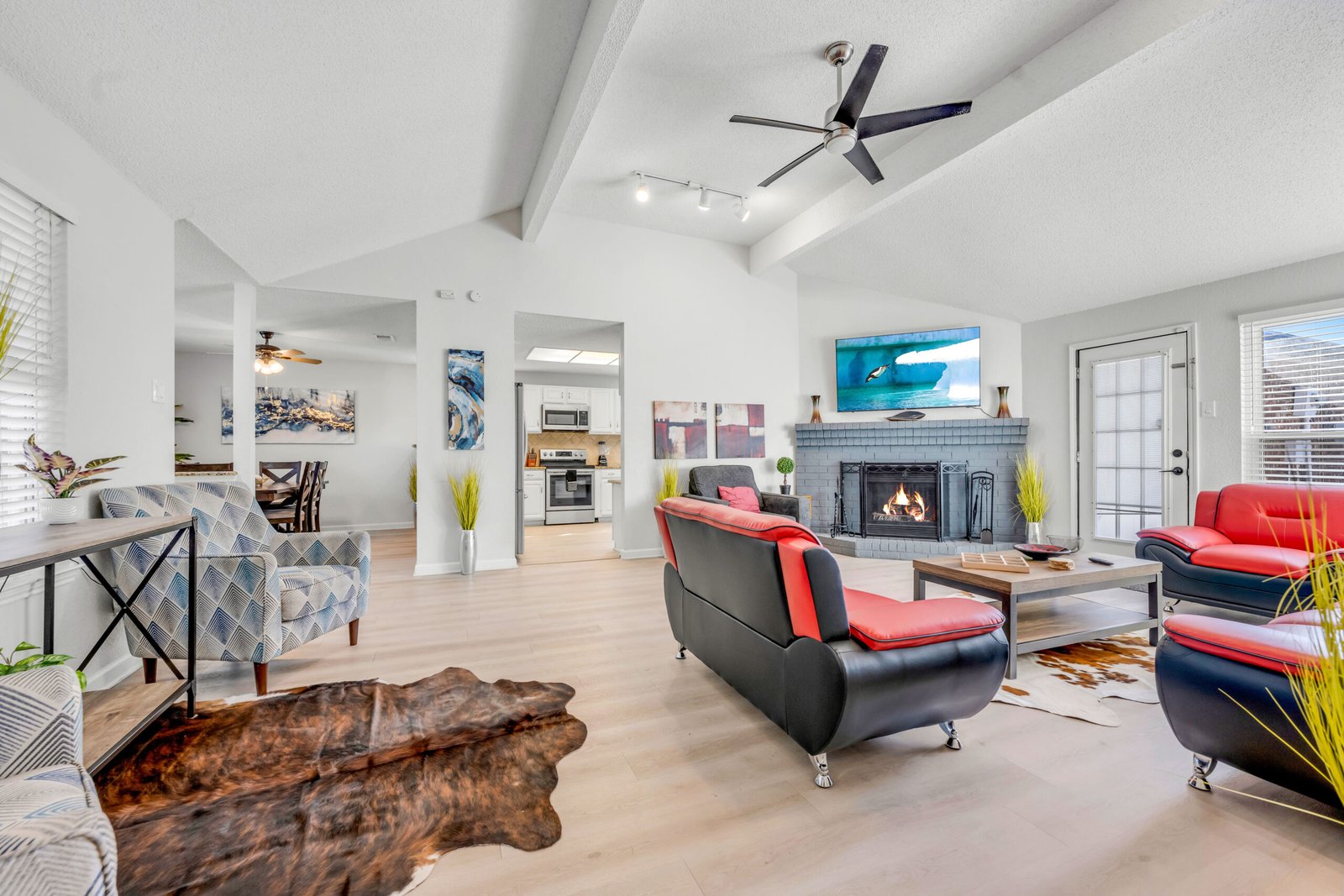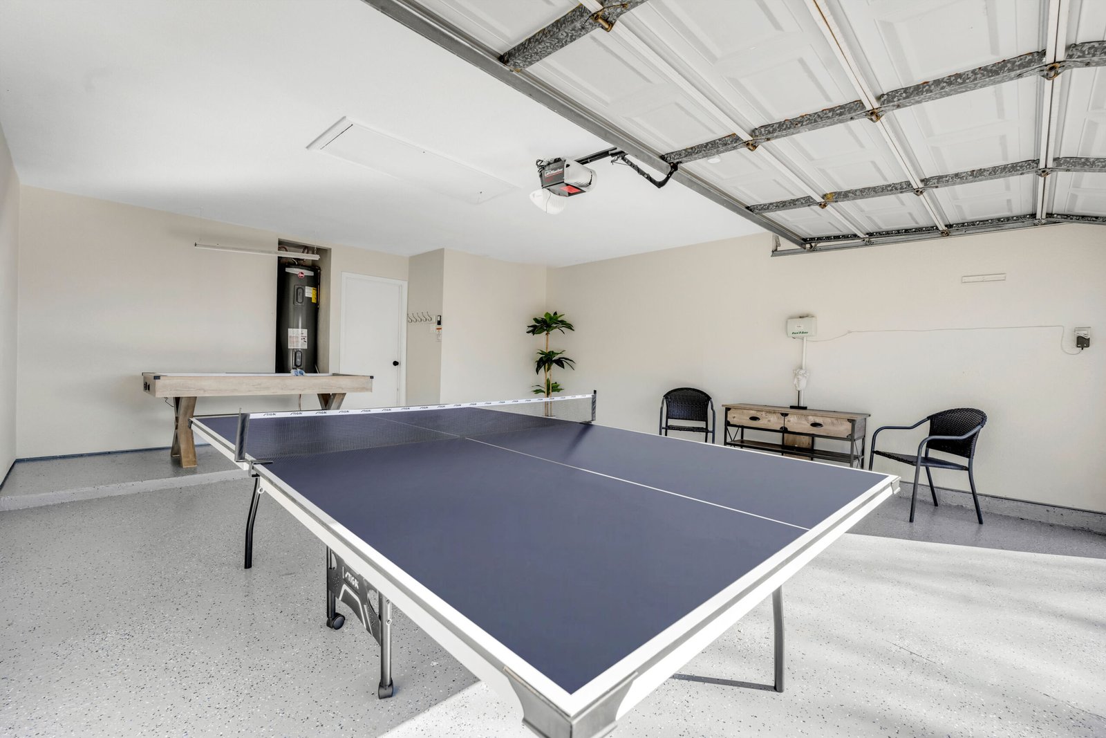 Primary room as a King bed with full attached en-suite bathroom. Other 3 bedrooms all have queen beds that share a common full bath. Spacious Kitchen with all stainless steel appliances and beautiful granite open to the dining room. Open concept living area that leads out to the backyard pool area. Garage converted to game room with ping pong and air hockey! Plenty of parking with back driveway, and parking in front of home.