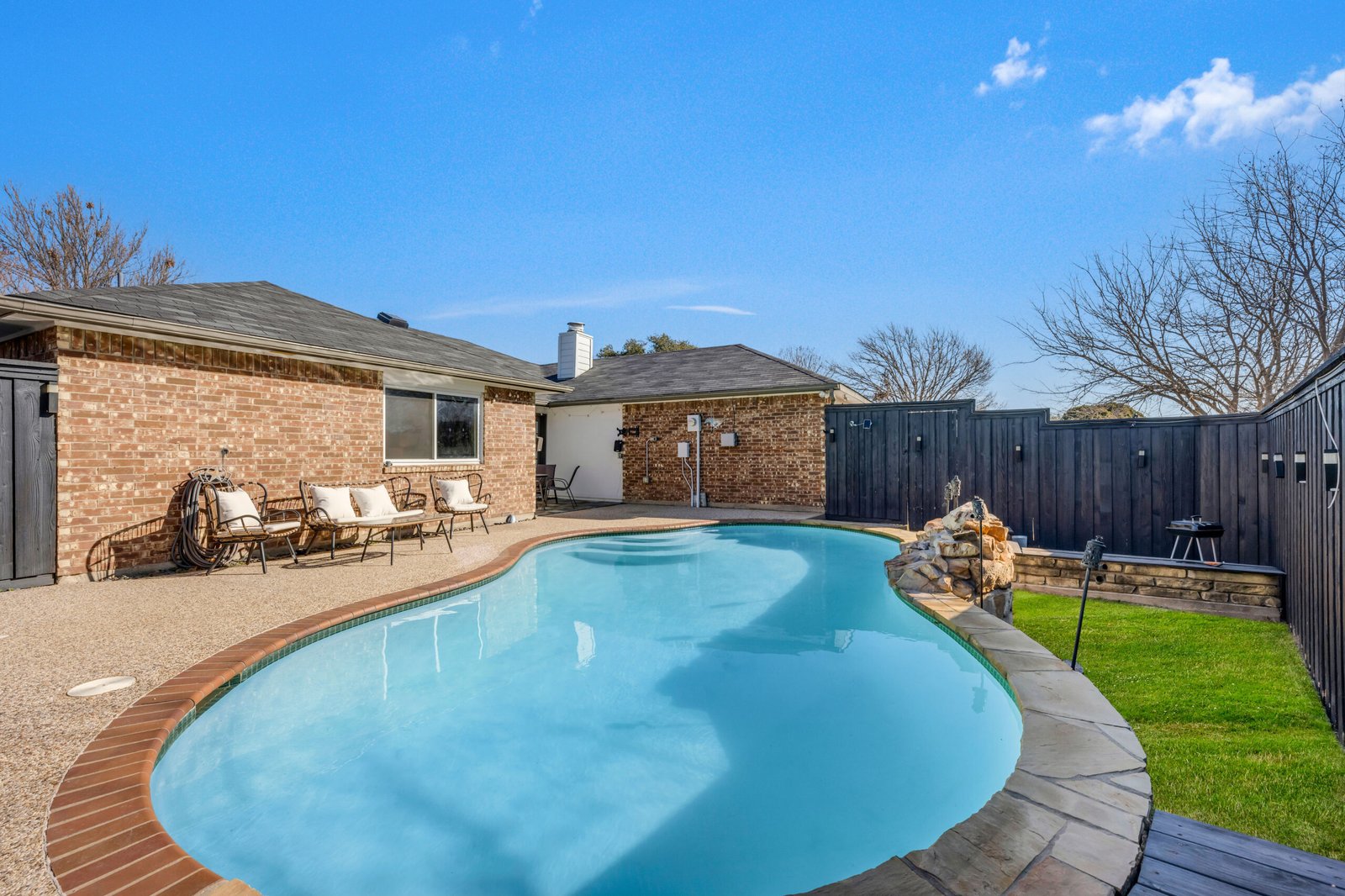 Your family will be close to everything when you stay at this centrally-located home in the heart of Plano! Just minutes from the main highway 75. The home has a beautiful backyard oasis with a gorgeous pool and BBQ for a memorable time with your family and friends! 4 bedrooms gives all your guests their own private space. All amenities included. Outlet mall and Legacy center all just a short drive away. Perfect for your reunions, family get together, sports teams, or corporate events!