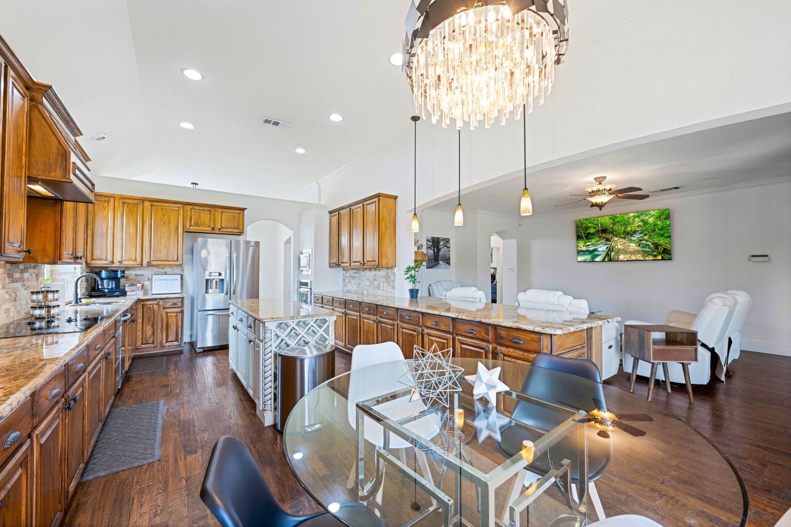 Luxury Resort-Style Retreat | Pool, Spa, Ping-Pong & More! Inside, you’ll find a huge, fully stocked kitchen with modern appliances and a spacious island, ideal for cooking and entertaining. The home is furnished with luxurious contemporary decor, creating a sleek yet cozy ambiance. Challenge friends to a game on the ping-pong table, or unwind in the stylish living areas. With ample space for large families or groups, this home is your private paradise, blending comfort, entertainment, and elegance. Book now and experience resort-style living!