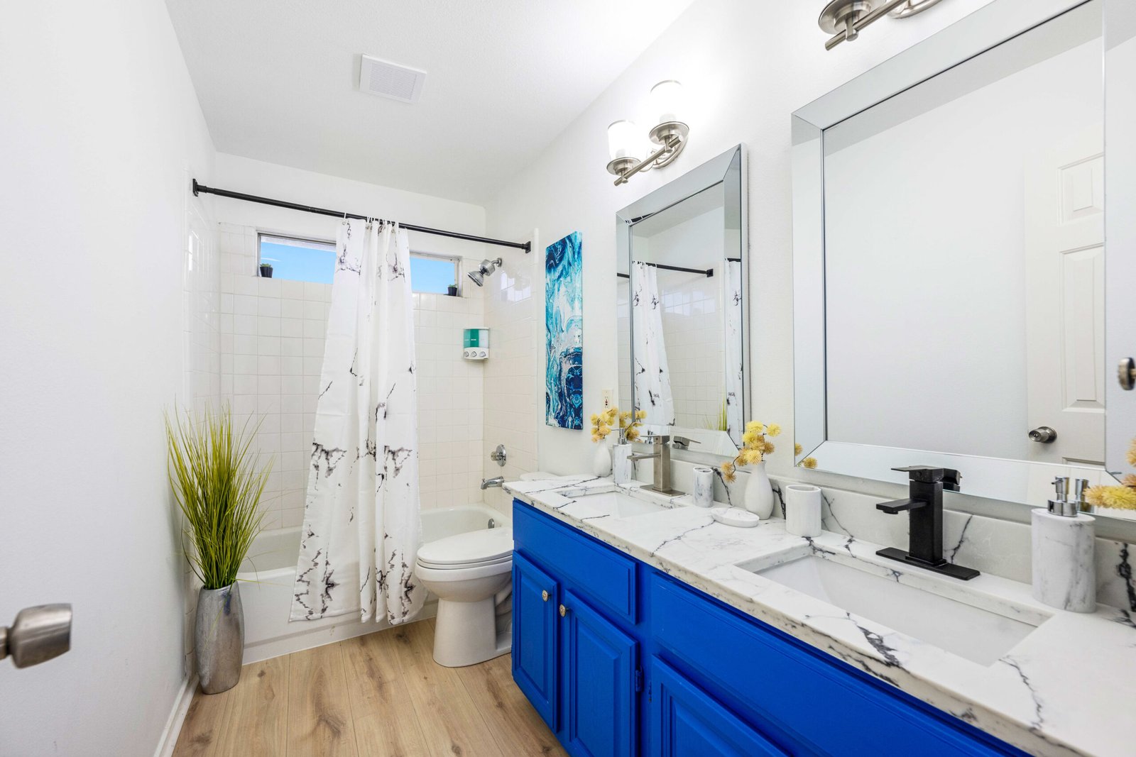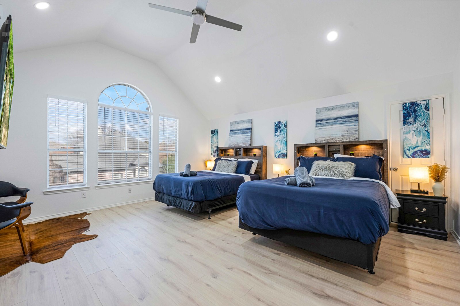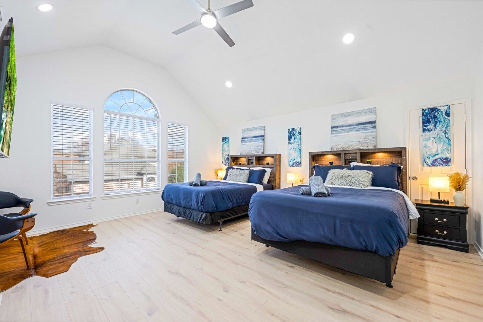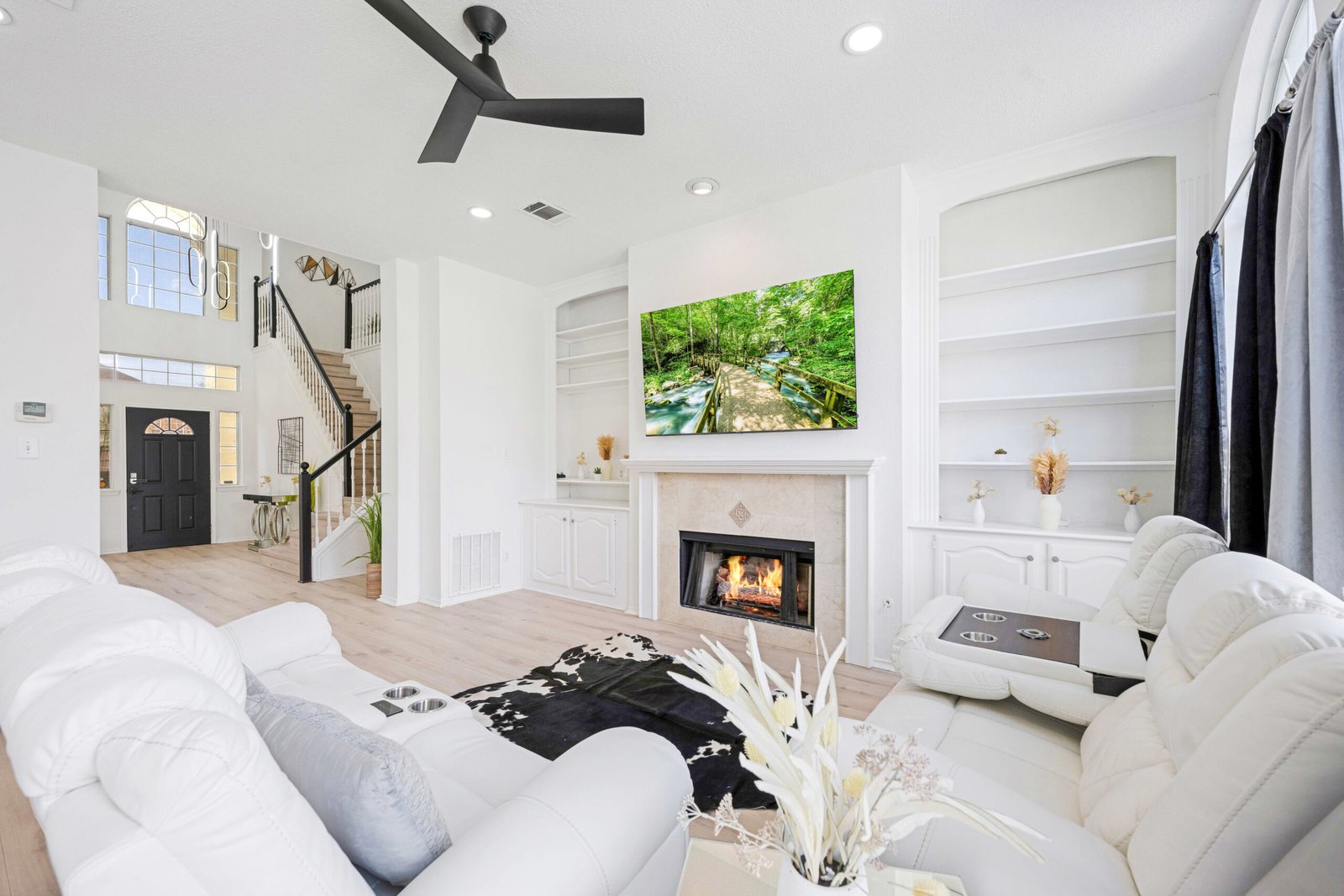 ✔ Extra-Large Backyard Oasis– Dive into the expansive pool & spa, surrounded by lush soft turf and stylish lounge areas. Enjoy Mini golf ⛳️ at the fully turfed spacious backyard and cornhole!